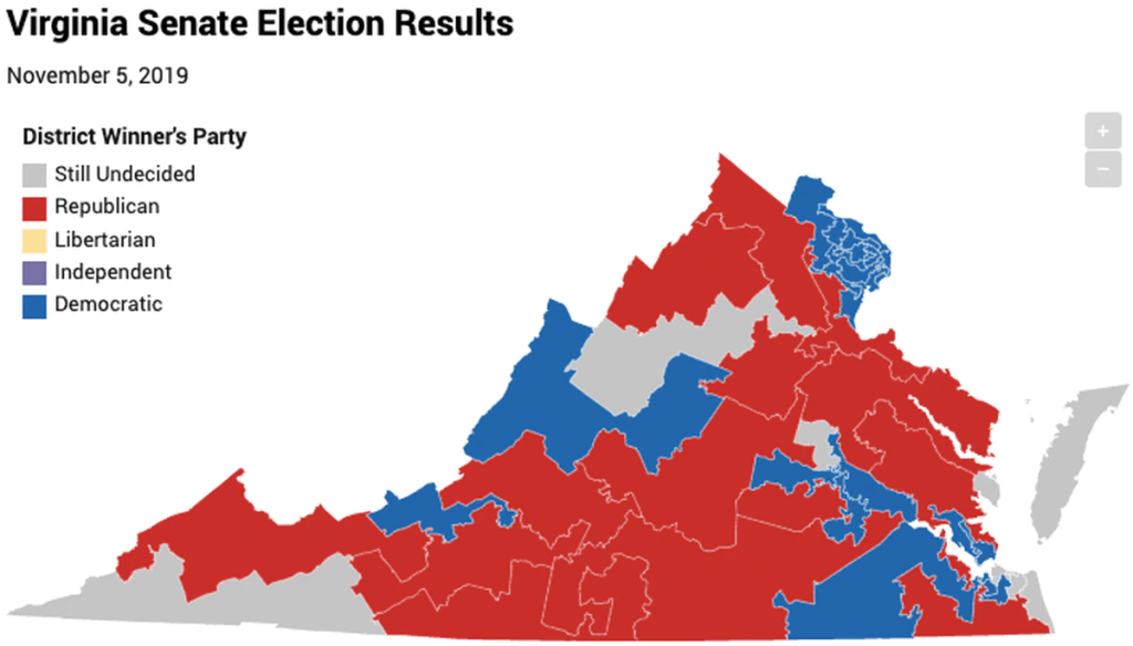 An important aspect of the protests that I should also note is their relation to the mayoral elections in France. On March 15 and 22 France held local elections for over ten thousand of its towns and villages. While, in the United States, we do not compare local elections to the likelihood of a party candidate winning the presidency, in France that is common practice. The most apt comparison would be to look at it on a smaller scale, such as the elections for state senator in Virginia being used as an indicator for who the governor will likely be. Here is a map of the state senator elections based on party affiliation: